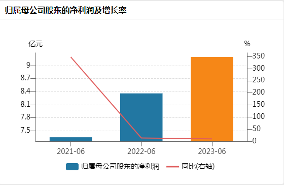 2021年上半年—2023年上半年,舍得酒业分别实现营业收入23.91亿元、30.25亿元、35.29亿元,同比增长133.09%、26.51%、16.64%;分别实现归母净利润7.35亿元、8.36亿元、9.20亿元,同比增长347.94%、13.60%、10.07%。