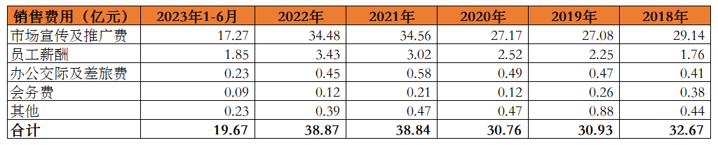 从销售费用明细来看,或与药品销售相关的费用共有三项市场宣传及推广费、办公交际及差旅费、会务费。其中,市场宣传及推广费占据了销售费用超八成的比重。