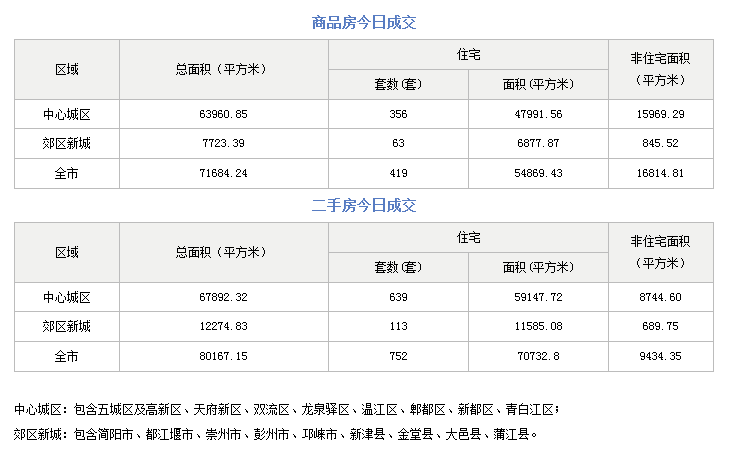 据成都市住建局住建蓉e办数据显示,2023年8月24日,成都市全市商品房成交(备案)总面积71684.24平方米;其中商品住宅成交(备案)419套,商品住宅成交(备案)面积54869.43平方米。二手房成交(备案)总面积80167.15平方米,其中二手住宅成交备案752套,二手住宅成交(备案)面积70732.8平方米。