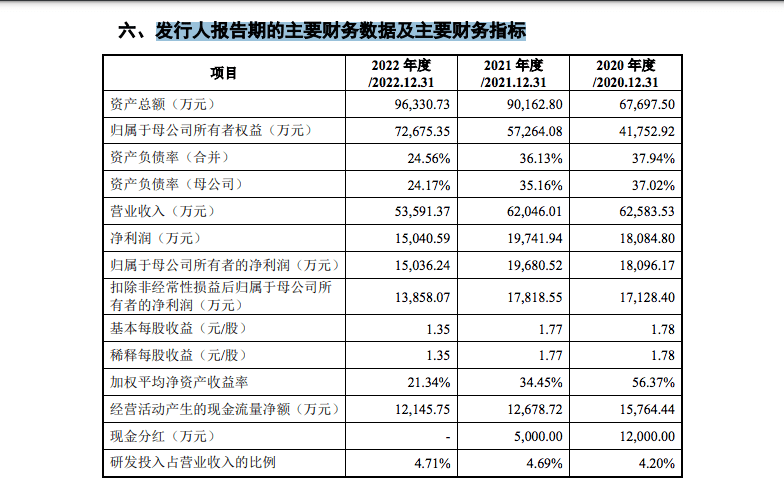 发行人选择《上海证券交易所股票上市规则》第 3.1.2 条第(一)款的上市 标准,即“最近 3 年净利润均为正,且最近 3 年净利润累计不低于 1.5 亿元,最 近一年净利润不低于 6000 万元,最近 3 年经营活动产生的现金流量净额累计不 低于 1 亿元或营业收入累计不低于 10 亿元”。报告期内,发行人最近三年扣除非经常性损益后归属于母公司所有者的净利 润分别为 17,128.40 万元、17,818.55 万元和 13,858.07 万元,累计为 48,805.02 万 元;最近一年扣除非经常性损益后归属于母公司所有者的净利润为 13,858.07 万 元,最近三年的营业收入分别为 62,583.53 万元、62,046.01 万元和 53,591.37 万 元,累计为 178,220.91 万元。 综上所述,发行人满足《上海证券交易所股票上市规则》第 3.1.2 条第(一) 款规定的上市标准。