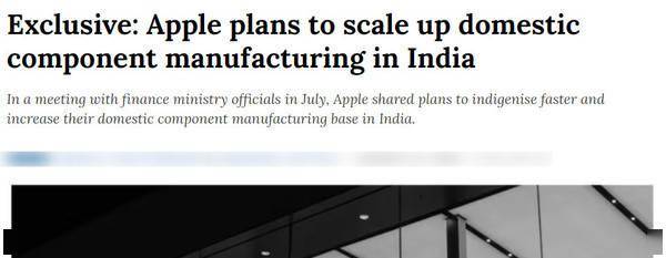 “7月份的一次会议上,苹果公司做了演示,他们希望政府了解其计划。苹果公司有兴趣扩大其在印度国内的零部件基地,并且正在积极考虑这一点。会议的重点是更好地理解供应链和更大程度的本土化。此外,苹果对智能手机制造业整体增长的前景也进行了展望。”该官员表示。