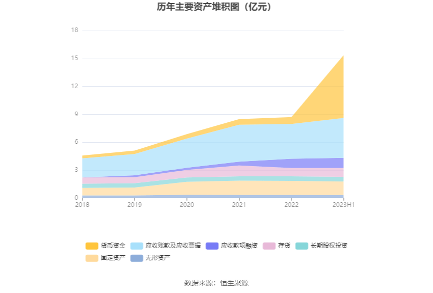 资产重大变化方面,截至2023年二季度末,公司货币资金余额较上年末增加835.45%,占公司总资产比重上升34.19个百分点;固定资产较上年末减少4.29%,占公司总资产比重下降7.48个百分点;存货余额较上年末增加5.61%,占公司总资产比重下降3.85个百分点;应收账款较上年末增加54.31%,占公司总资产比重下降2.55个百分点。