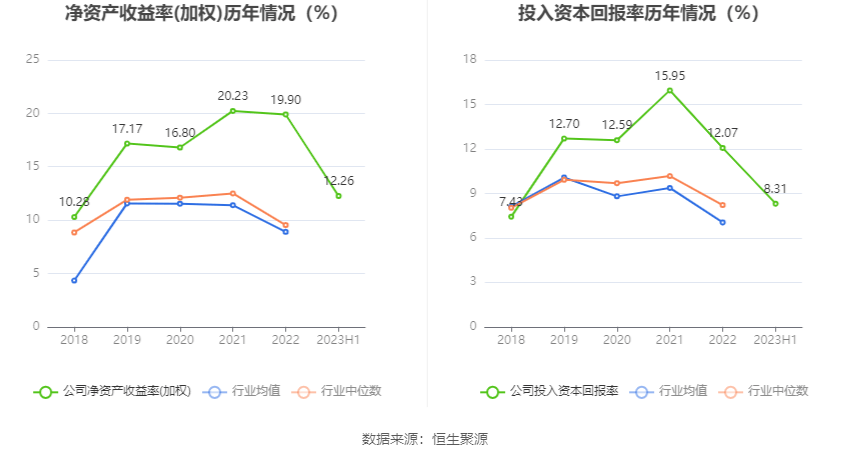 数据显示,2023年上半年公司加权平均净资产收益率为12.26%,较上年同期增长0.76个百分点;公司2023年上半年投入资本回报率为8.31%,较上年同期增长1.60个百分点。