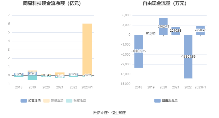 进一步统计发现,2023年上半年公司自由现金流为2758.90万元,上年同期为-17279.92万元。