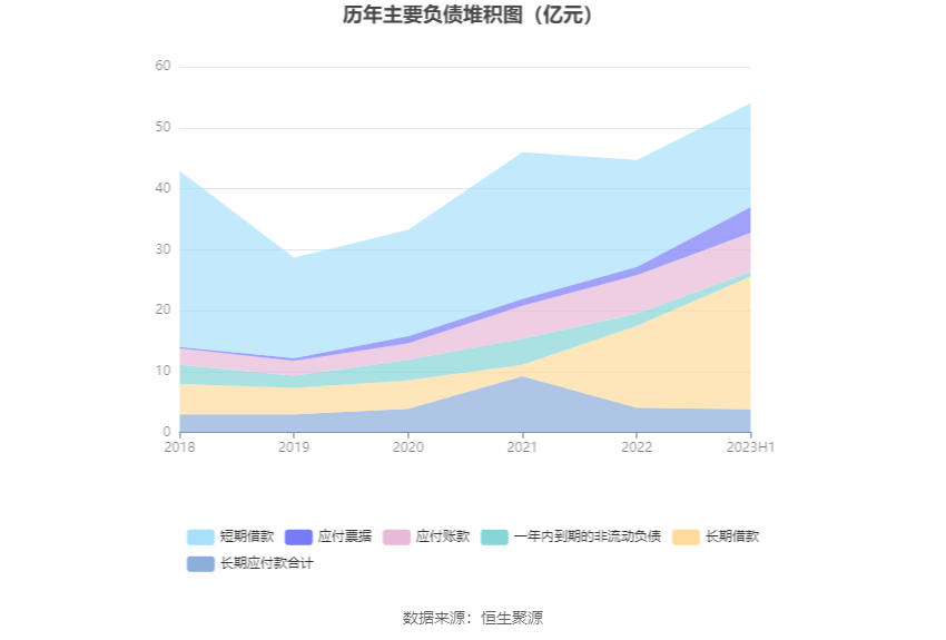负债重大变化方面,截至2023年二季度末,公司长期借款较上年末增加62.67%,占公司总资产比重上升6.47个百分点;一年内到期的非流动负债较上年末减少60.58%,占公司总资产比重下降1.30个百分点;短期借款较上年末减少2.98%,占公司总资产比重下降2.10个百分点;合同负债较上年末减少19.98%,占公司总资产比重下降0.15个百分点。