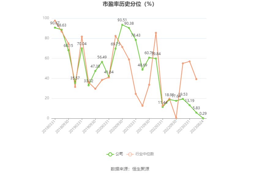 市盈率为负时,不显示当期分位数,会导致折线图中断。
