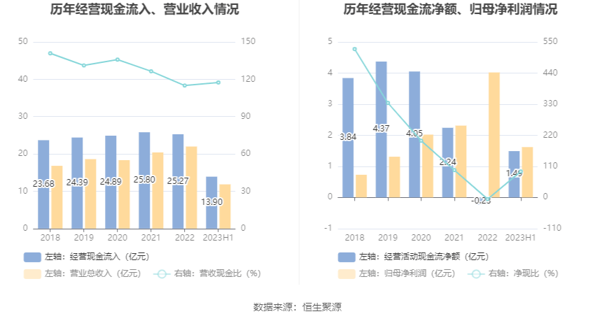 2023年上半年,公司营业收入现金比为117.42%,净现比为92.01%。