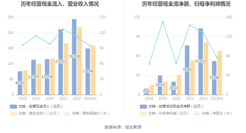 2023年上半年,公司营业收入现金比为94.15%,净现比为76.95%。