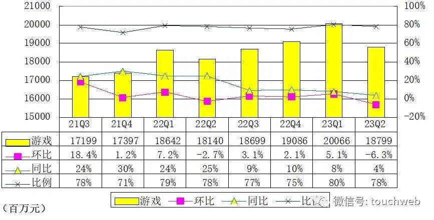 网易2023年第二季度游戏和相关增值服务净营收为187.986亿元(约25.925亿美元),较上一季度的200.656亿元降6.3%,较上年同期的181.398亿元增长4%。