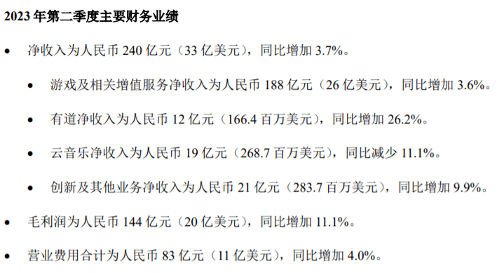 财报显示,过去一个季度,网易净收入240亿元,同比增长3.7%,非公认会计准则下归属于公司股东的持续经营净利润为人民币 90 亿元,同比增长67%。其中,游戏相关业务收入为188亿元,占总收入的78.3%。