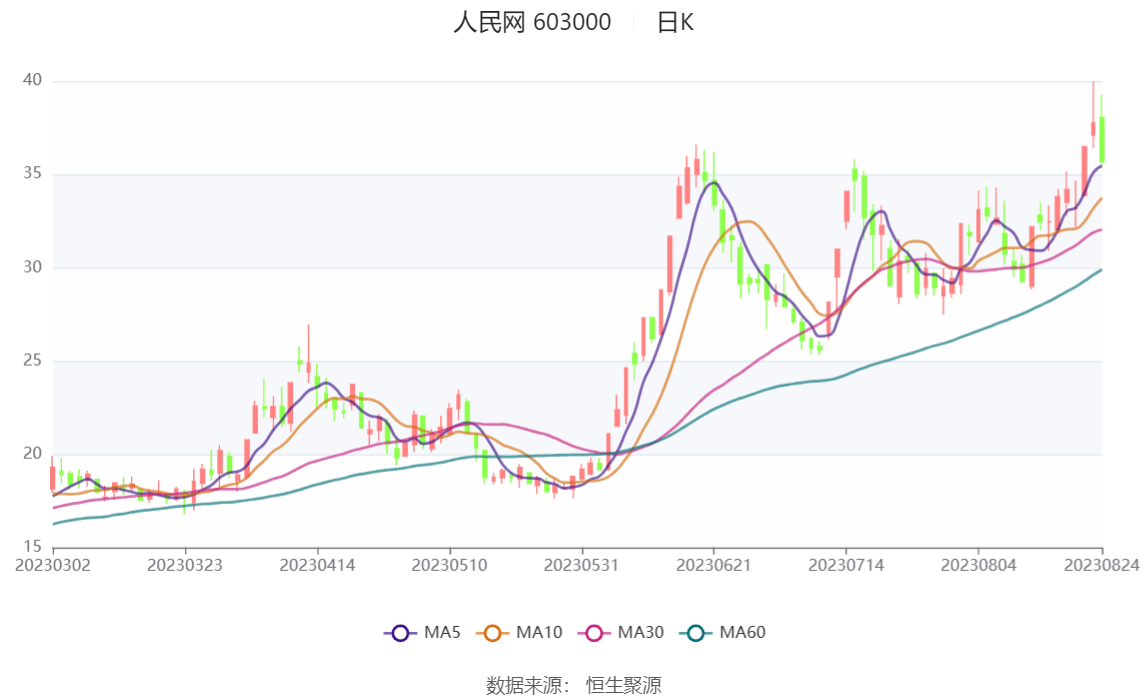 以8月24日收盘价计算,人民网目前市盈率(TTM)约为145.08倍,市净率(LF)约为11.37倍,市销率(TTM)约为19.59倍。