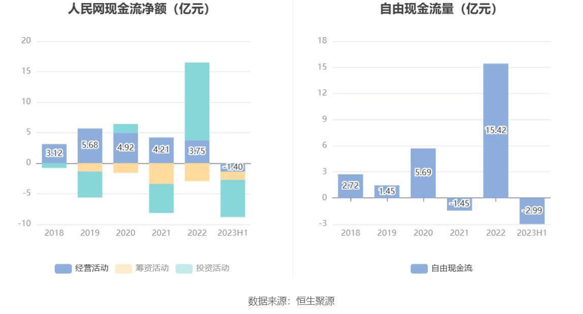 进一步统计发现,2023年上半年公司自由现金流为-2.99亿元,上年同期为3.36亿元。