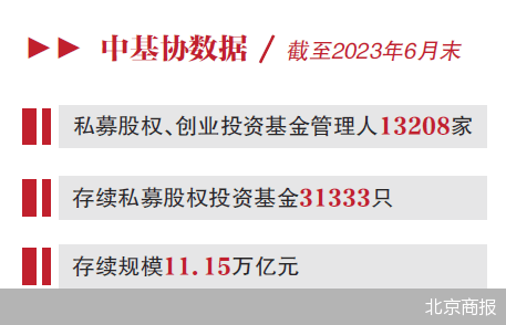 在经济复苏后,存续私募股权投资基金的规模也有所增长。中国证券投资基金业协会数据显示,截至2023年6月末,私募股权、创业投资基金管理人13208家,存续私募股权投资基金31333只,存续规模11.15万亿元,同比增长2.86%。