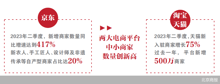 因此,2023年上半年,电商企业打出低价策略的同时,也强调对中小商家的扶持。京东、抖音、微信视频号等平台下放商家入驻门槛。例如京东启动的“春晓计划”,能在成本、流量、效率、物流、金融等多方面给予中小商家支持。基于寻源采购平台,POP商家还可以向京东自营供货。