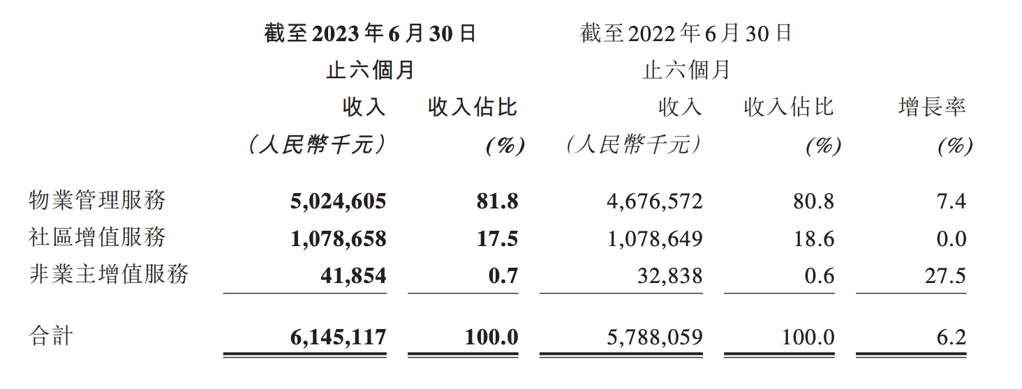 截至6月30日,恒大物业的营业收入约61.45亿元,同比增长约6.2%。其中,物业管理服务收入约50.24亿元,非业主增值服务收入约4185万元,社区增值服务收入约10.78亿元。