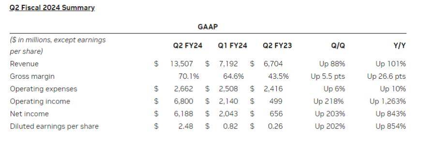 行业分析师评论称,英伟达第二财季业绩的大幅增长,与第一财季的表现一样,表明英伟达数据中心业务的需求持续强劲,而第三财季的指引比市场预期高出29%,而随着数据中心贡献的增加,毛利率可能会继续上升。
