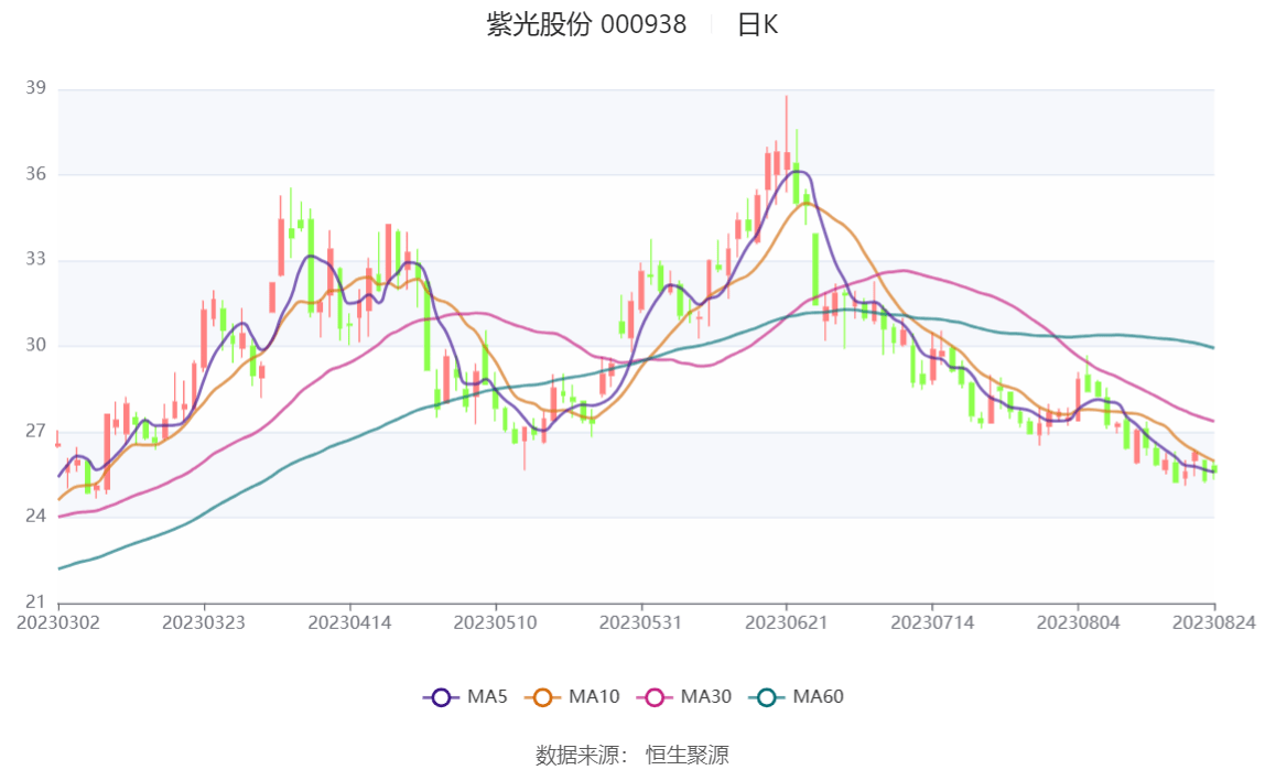 以8月24日收盘价计算,紫光股份目前市盈率(TTM)约为32.96倍,市净率(LF)约为2.23倍,市销率(TTM)约为0.97倍。