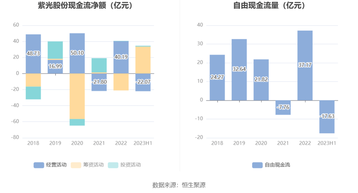 进一步统计发现,2023年上半年公司自由现金流为-17.63亿元,上年同期为-19.26亿元。