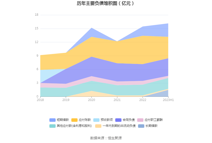 负债重大变化方面,截至2023年二季度末,公司应付账款较上年末减少24.59%,占公司总资产比重下降4.16个百分点;短期借款较上年末增加44.27%,占公司总资产比重上升2.02个百分点;合同负债较上年末增加5.07%,占公司总资产比重上升0.17个百分点;一年内到期的非流动负债较上年末减少18.73%,占公司总资产比重下降0.15个百分点。