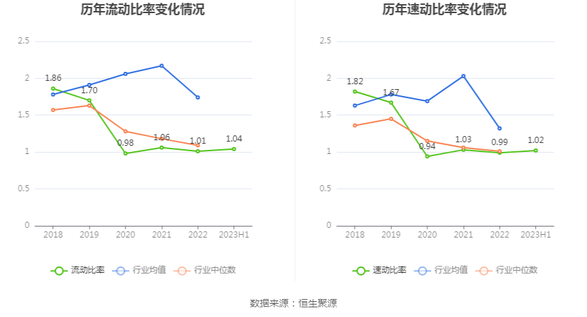 2023年上半年,公司流动比率为1.04,速动比率为1.02。