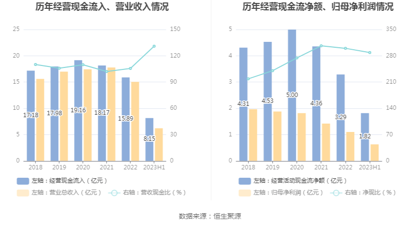 2023年上半年,公司营业收入现金比为130.99%,净现比为288.68%。
