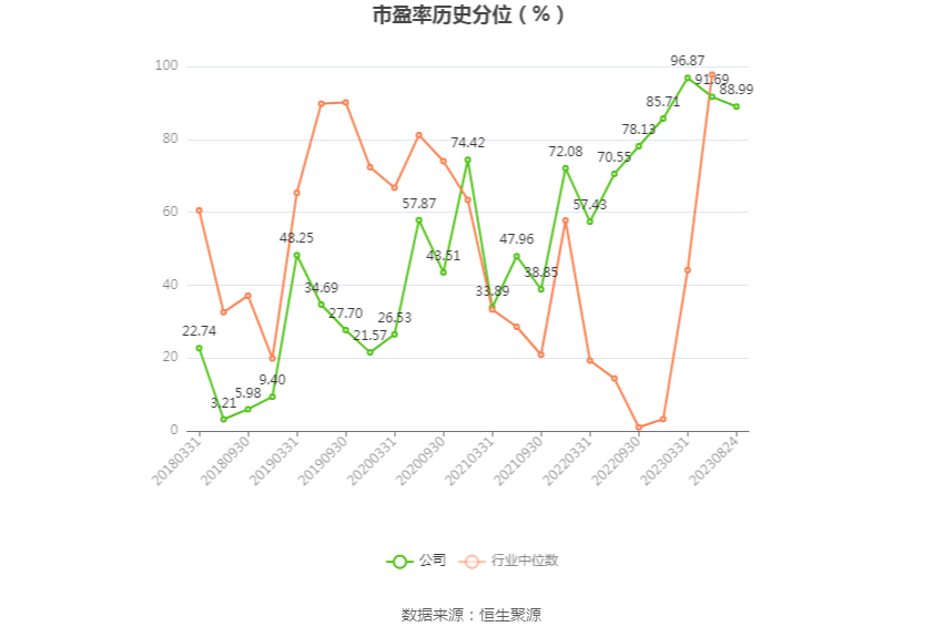 市盈率为负时,不显示当期分位数,会导致折线图中断。