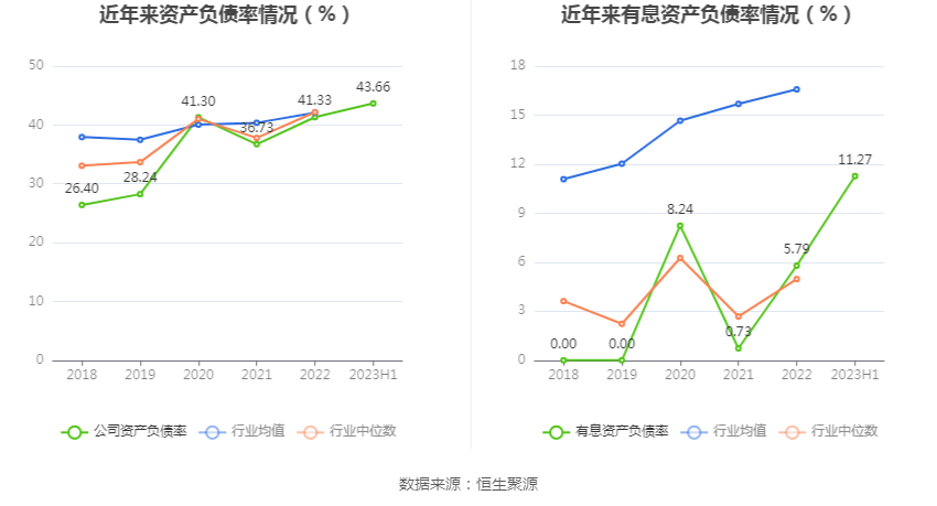 偿债能力方面,公司2023年二季度末资产负债率为43.66%,相比上年末增加2.33个百分点;有息资产负债率为11.27%,相比上年末增加5.48个百分点。