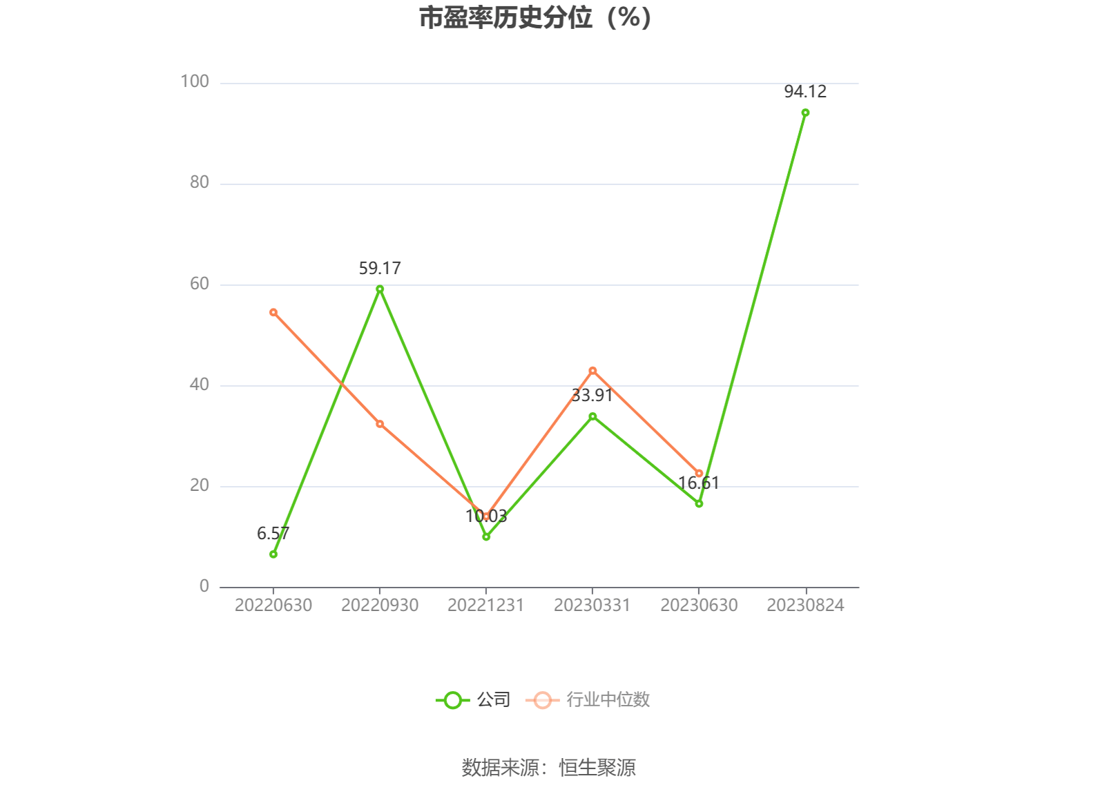 市盈率为负时,不显示当期分位数,会导致折线图中断。