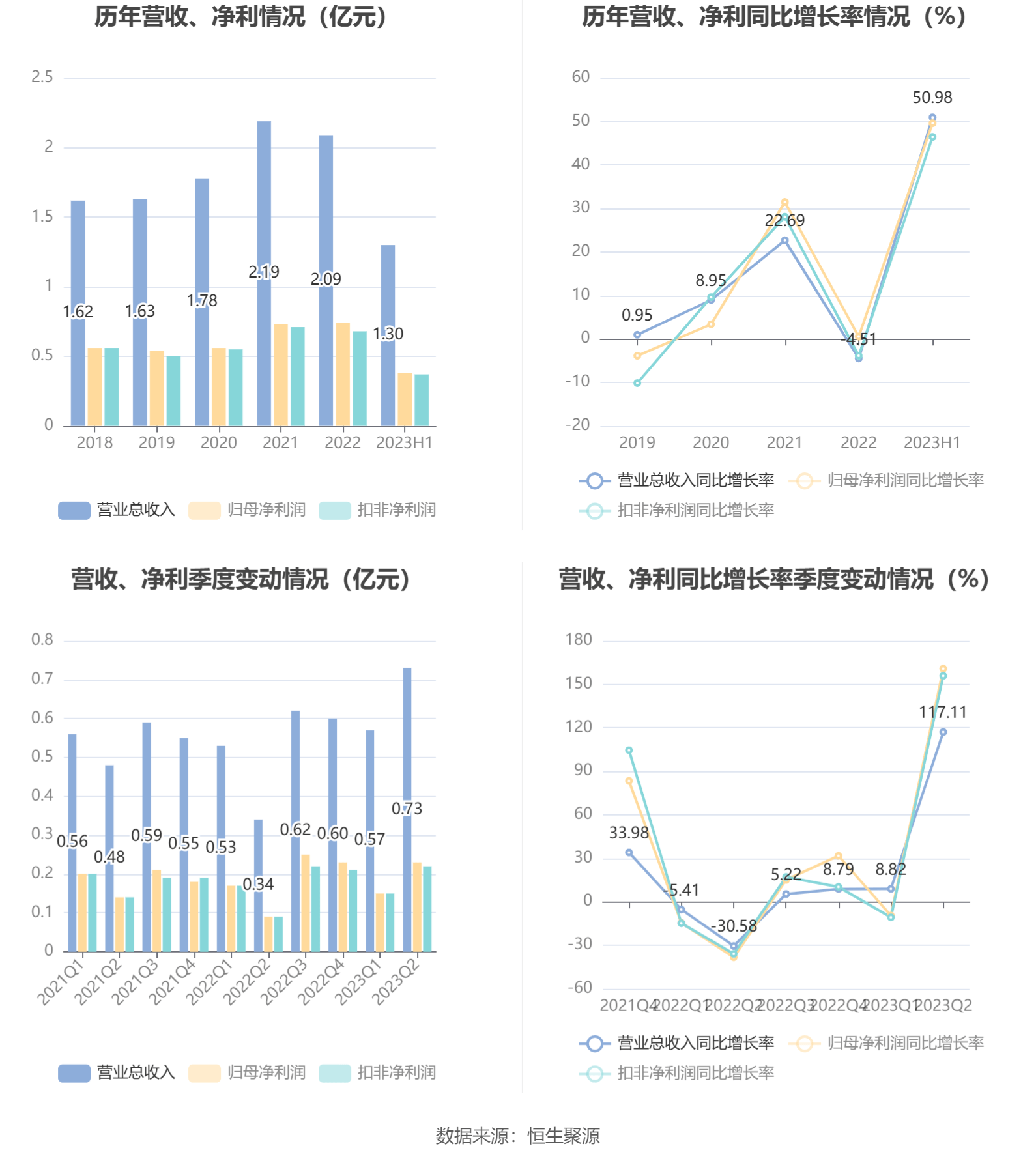 根据半年报,公司第二季度实现营业总收入7297.35万元,同比增长117.11%,环比增长27.19%;归母净利润2328.62万元,同比增长160.91%,环比增长53.61%;扣非净利润2240.32万元,同比增长155.98%,环比增长50.06%。
