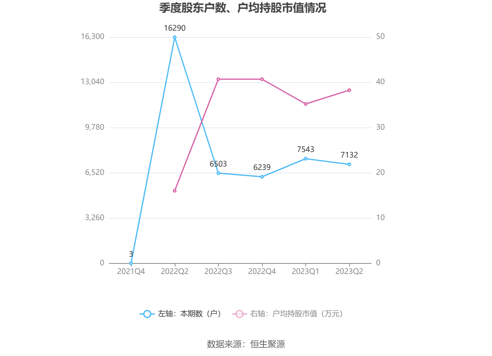 筹码集中度方面,截至2023年二季度末,公司股东总户数为7132户,较一季度末下降了411户,降幅5.45%;户均持股市值由一季度末的35.24万元上升至38.28万元,增幅为8.63%。