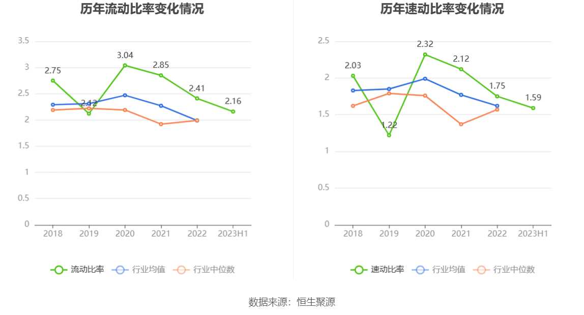 2023年上半年,公司流动比率为2.16,速动比率为1.59。