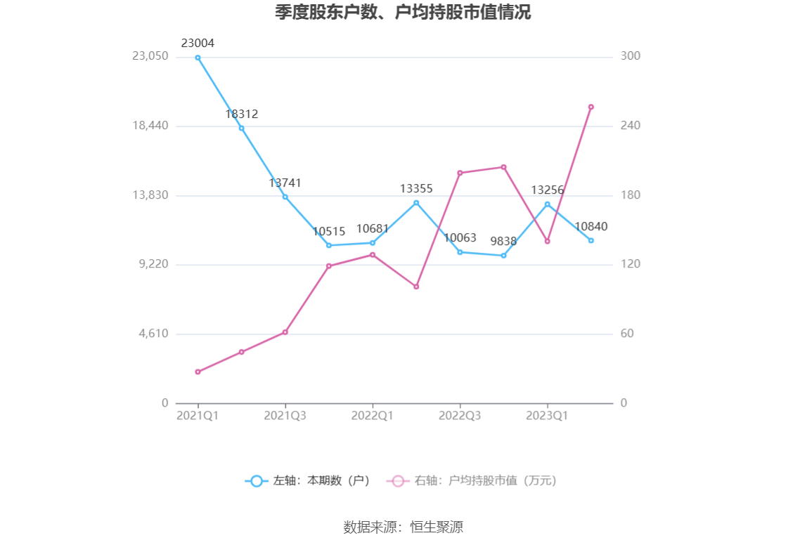 筹码集中度方面,截至2023年二季度末,公司股东总户数为1.08万户,较一季度末下降了2416户,降幅18.23%;户均持股市值由一季度末的140.44万元上升至256.74万元,增幅为82.81%。