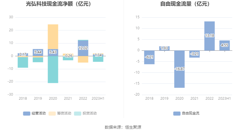 进一步统计发现,2023年上半年公司自由现金流为4.55亿元,相比上年同期下降10.28%。