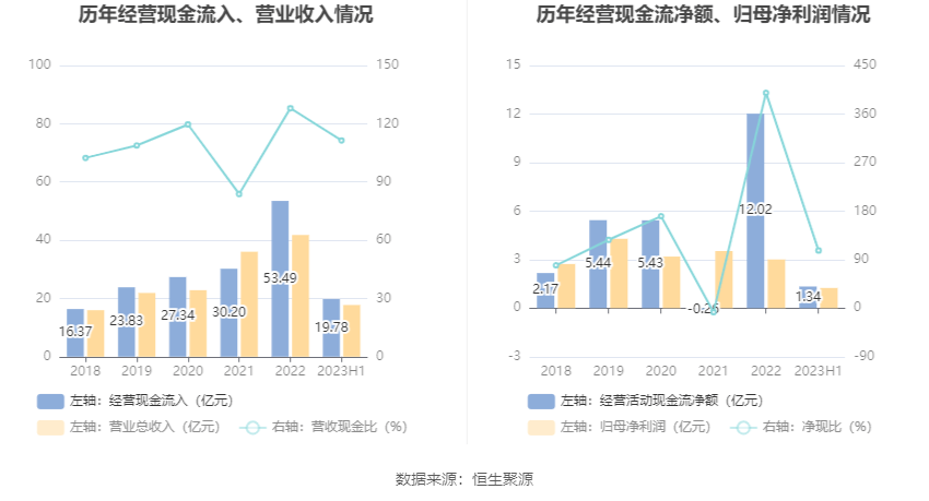 2023年上半年,公司营业收入现金比为111.40%,净现比为106.97%。