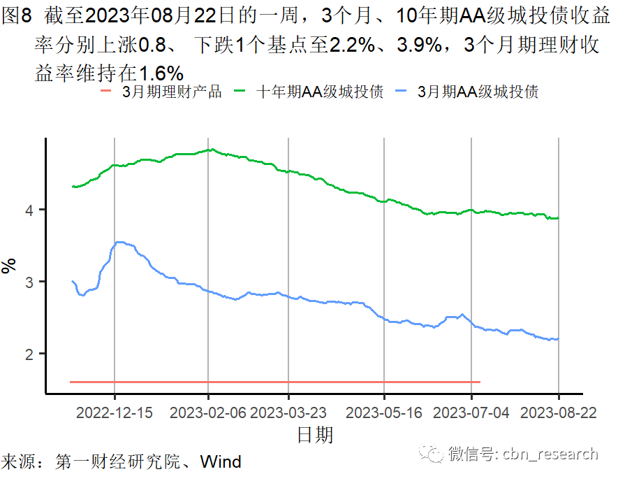 截至8月22日的一周,央行通过公开市场净投放资金为4910亿元。银行间隔夜利率在截至8月22日的一周上升3个基点,过去一个月上升26个基点,较去年同期上升71个基点。七天回购利率在过去一周上升2个基点,过去一个月上升10个基点,较去年同期上升45个基点。