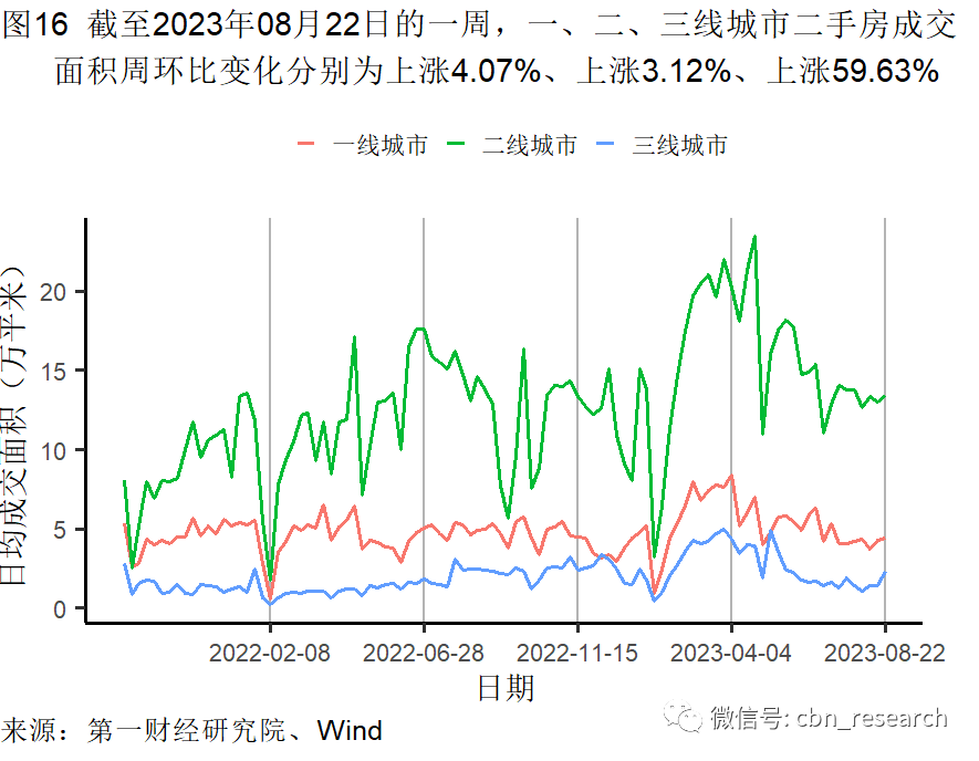 截至8月22日的高频数据显示,一、二、三线城市新房及二手房日均成交面积继续处于同比负增长区间,显示房屋市场需求依然有待恢复。
