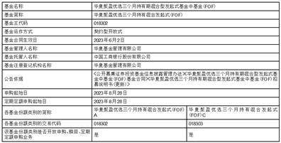 投资人在开放日办理华夏聚盈优选三个月持有期混合型发起式基金中基金(FOF)(以下简称“本基金”)基金份额的申购、赎回、定期定额申购等业务。本基金对每份基金份额设置三个月持有期(持有期“起始日”及“到期日”定义详见本公告“4.3 其他与赎回相关的事项”)。在基金份额的持有期到期日前(不含当日),基金份额持有人不能对该基金份额提出赎回申请;基金份额的持有期到期日起(含当日),基金份额持有人可对该基金份额提出赎回申请。本基金基金合同自2023年6月2日起生效,基金管理人自认购份额的持有期到期日(即基金合同生效日三个月后的月度对应日,如该日为非工作日,则顺延至下一工作日)起(含当日)开始办理赎回,本基金合同生效日三个月后的月度对应日为2023年9月4日。