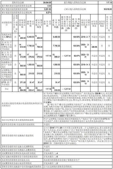 注:公司分别于2020年1月14日、2020年2月12日召开第六届董事会第十一次临时会议、2020年第一次临时股东大会审议通过了《关于部分募投项目结项或终止并将剩余募集资金永久补充流动资金以及部分募投项目延期的议案》,同意公司将“苏州年产6.5万套定制整装卫浴空间项目”进行结项,终止“定制整装卫浴浴缸淋浴房智能制造生产线项目”及“互联网营销OTO推广平台项目”,并将上述三个募投项目节余募集资金用于永久性补充流动资金,同时将“浙江年产13万套定制整装卫浴空间项目”的建设完成期限延期至2023年12月31日前完成。