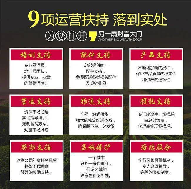 同时,公司将为您提供全方位的支持和服务,助您在红酒市场中轻松经营,享受成功之路。无论您是刚起步还是已经拥有一定经验的经营者,我们都能与您携手合作,共同实现更大的商业价值。
