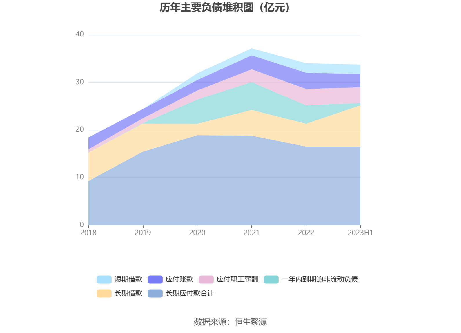 负债重大变化方面,截至2023年二季度末,公司长期借款较上年末增加81.16%,占公司总资产比重上升1.61个百分点;一年内到期的非流动负债较上年末减少87.90%,占公司总资产比重下降1.56个百分点;应付账款较上年末减少18.86%,占公司总资产比重下降0.35个百分点。