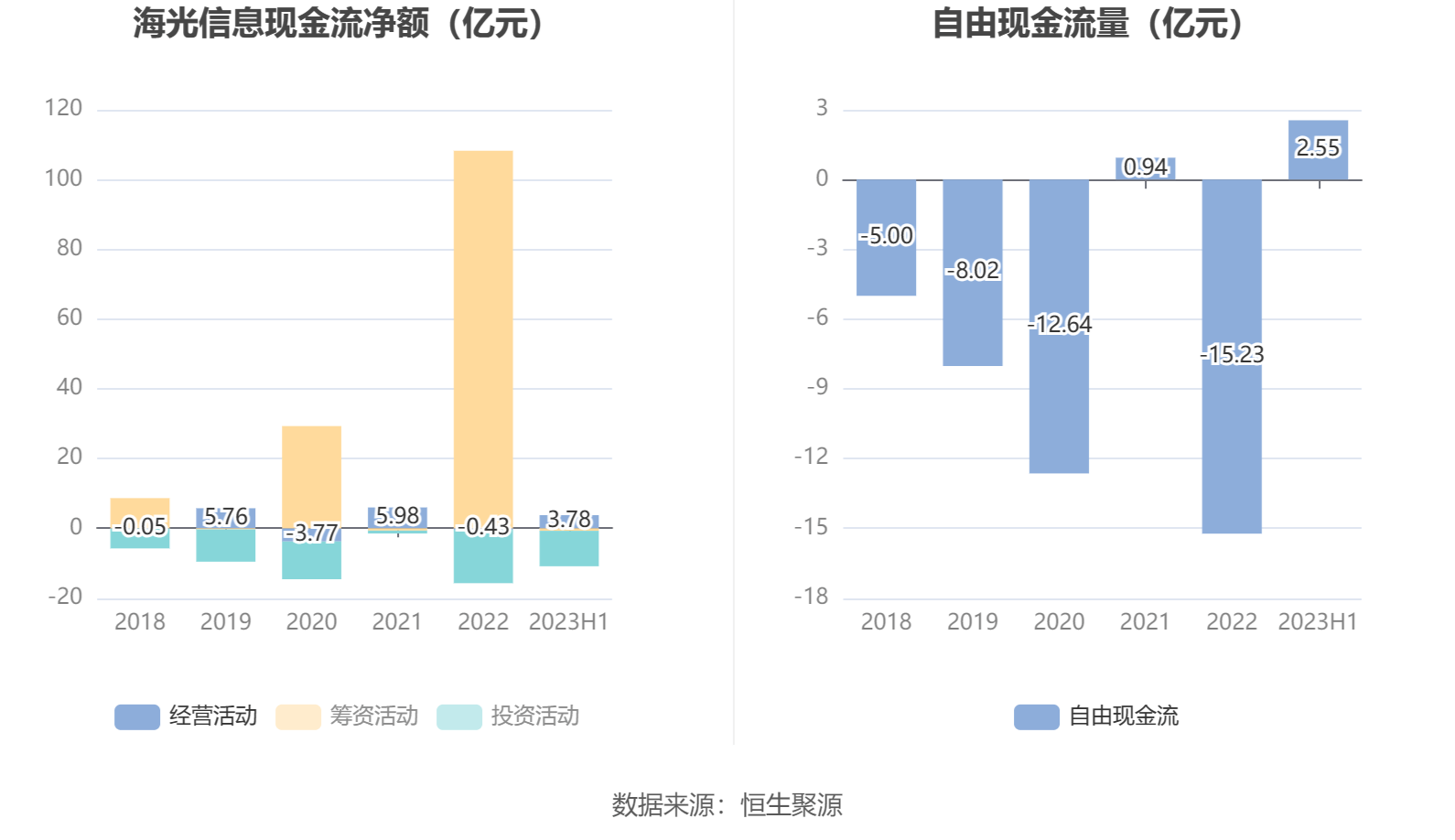 进一步统计发现,2023年上半年公司自由现金流为2.55亿元,上年同期为-11.27亿元。