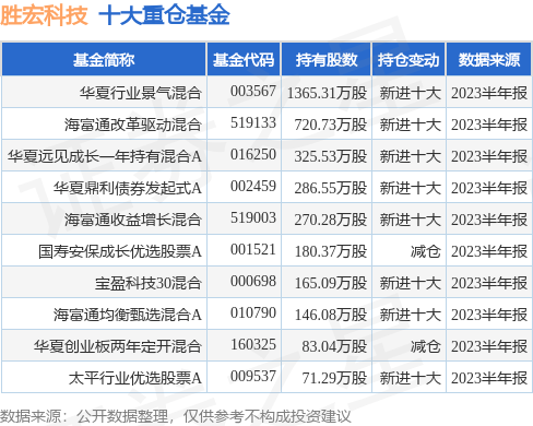 重仓胜宏科技的前十大公募基金请见下表: