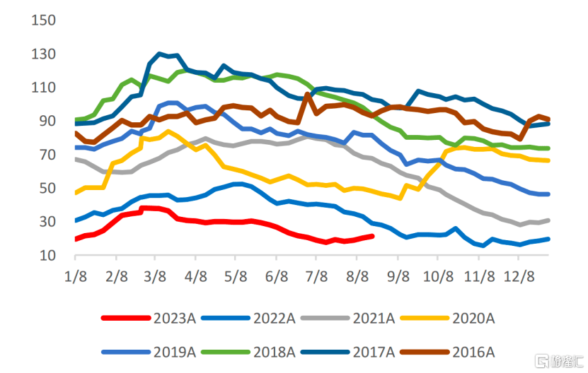 根据8月18日后的统计数据,全球铜库存21.26万吨,环比增加1.09万吨,同比减少7.58万吨,铜的显性库存继续去化。回看2018年到现在,从下图中的趋势能够看出,铜库存整体上都呈现出下降趋势。