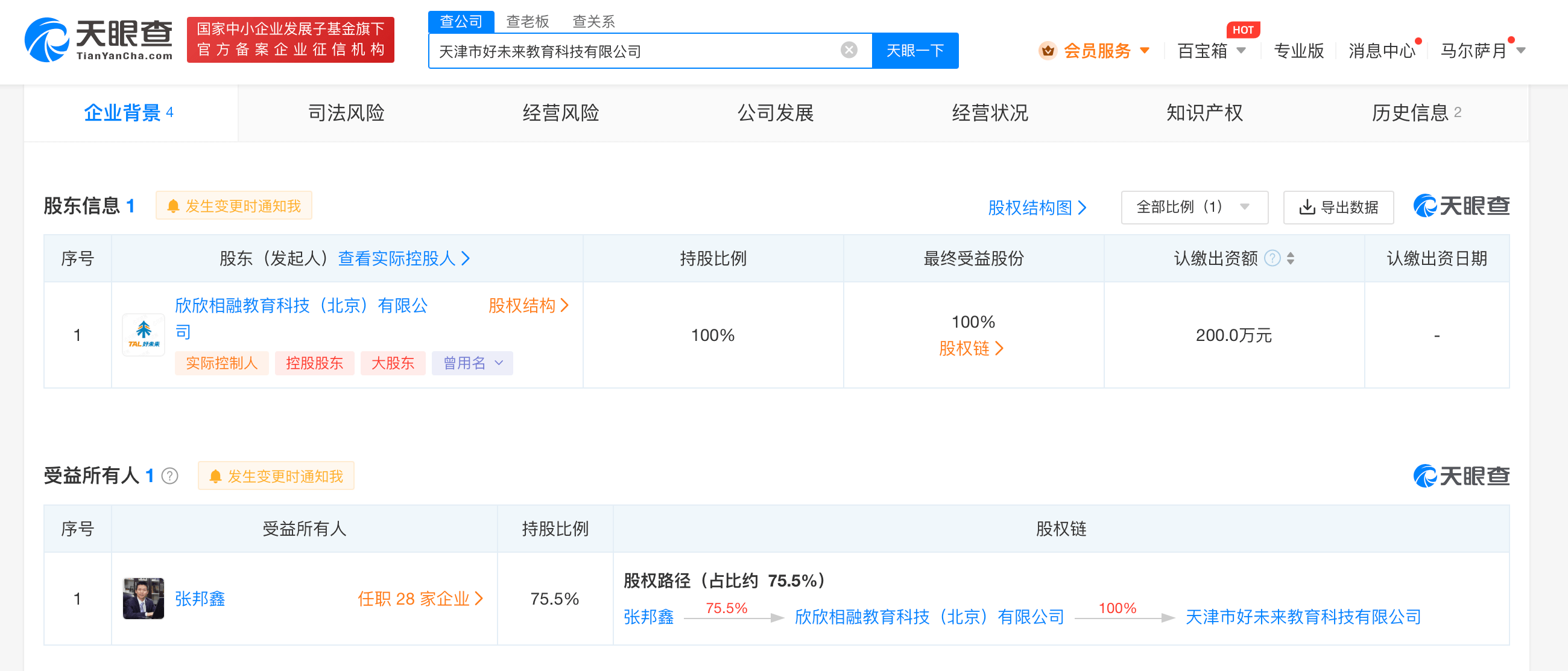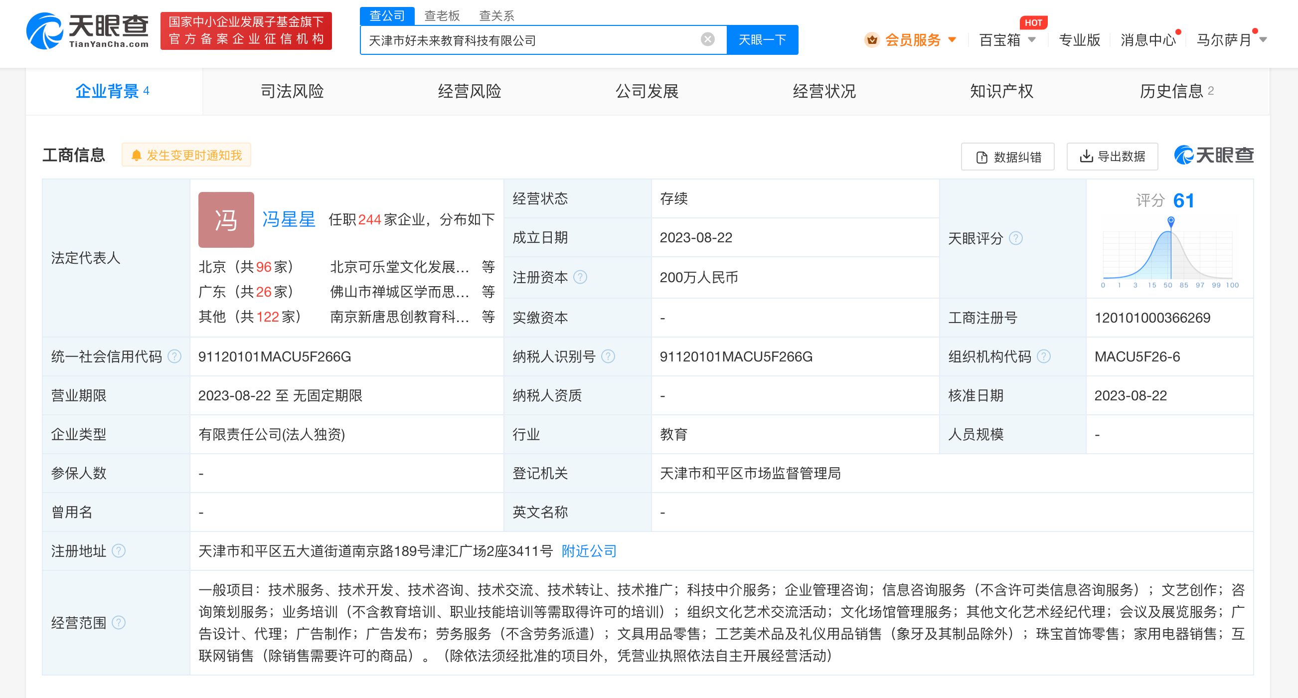 天眼查App显示,近日,天津市好未来教育科技有限公司成立,法定代表人为冯星星,注册资本200万人民币,经营范围含技术服务、科技中介服务、文艺创作、互联网销售等。股东信息显示,该公司由好未来旗下欣欣相融教育科技(北京)有限公司全资持股。