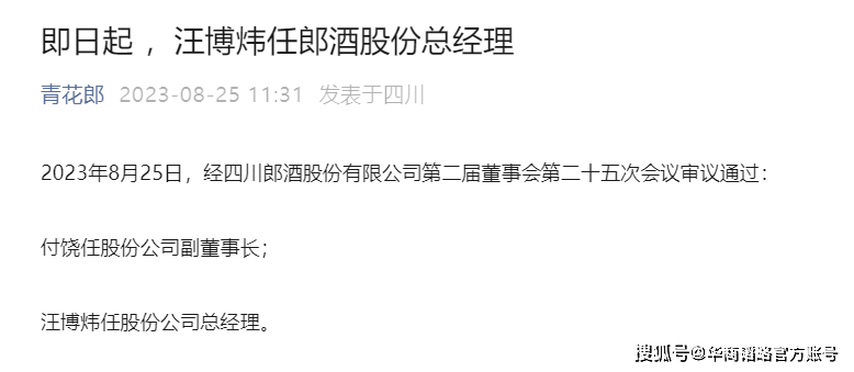 刚刚,郎酒股份宣布了近年来最重要的人事变化:公司副董事长汪博炜,出任总经理。