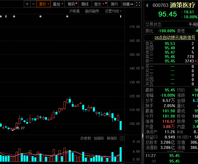 8月25日早盘,通策医疗以3.92%的跌幅低开,随后股价显著跳水,十分钟内触及跌停板,盘中资金多次试图撬板,午间仍以跌停收盘,早盘成交金额达到6.33亿元。