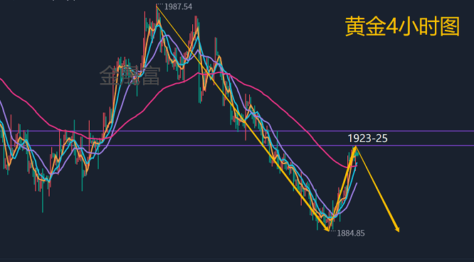 策略一:黄金反弹1920-1923附近分批做空(买跌)十分之二仓位,止损6个点,目标1910-1905附近,破位看1900一线;(建议仅供参考,投资有风险,入市需谨慎!)