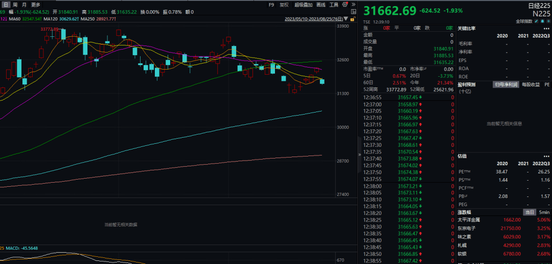 日本日经225指数盘中跌幅一度超过2%,留下向下跳空缺口。