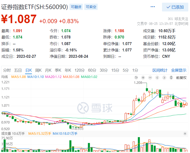 有行情,买证券!热门ETF方面,A股行情风向标——证券指数ETF(560090)强势连涨,现涨0.83%,成功突破5日、30日均线!