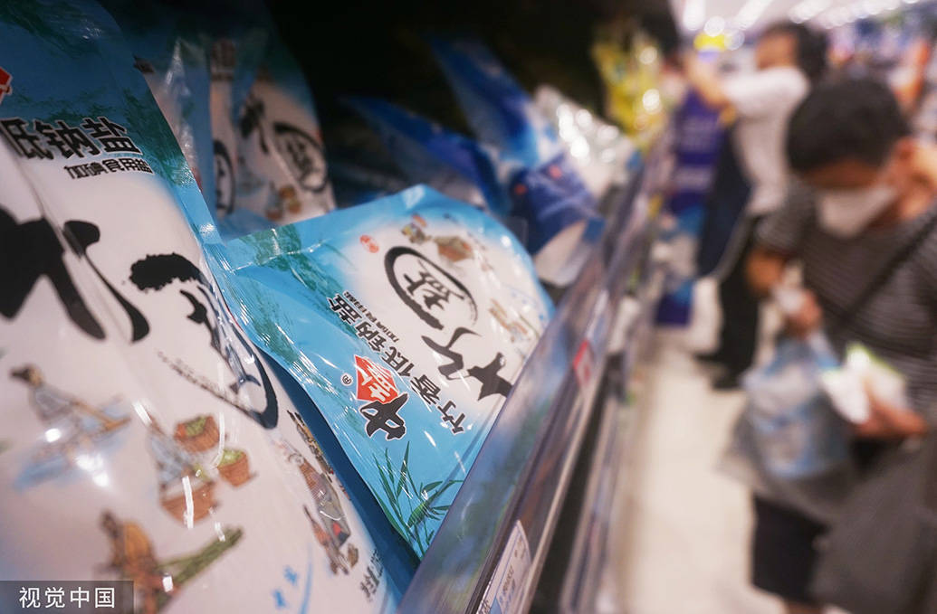 2023年8月24日,杭州,市民在一家超市购买食盐。